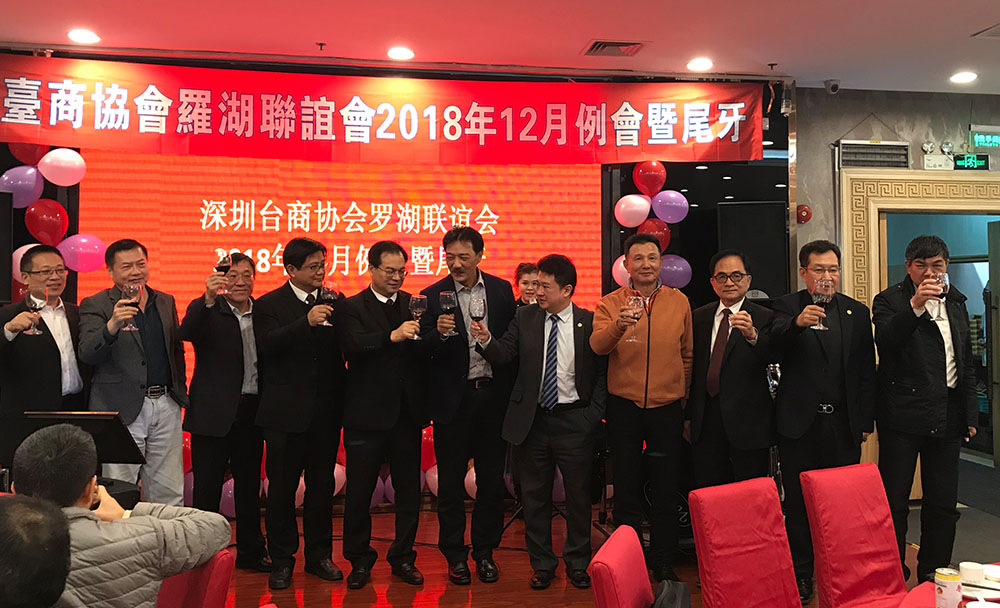 深圳台商協會羅湖聯誼會「12月例會暨年終尾牙晚會」日前在羅湖南方聯合大酒店舉辦,羅湖聯誼會會長彭成炫表示,希望與會務團隊一起,繼續發揮溝通政府、推進兩地經貿交流合作的平台的作用,為當地建設及兩岸和平發展再盡綿薄之力。