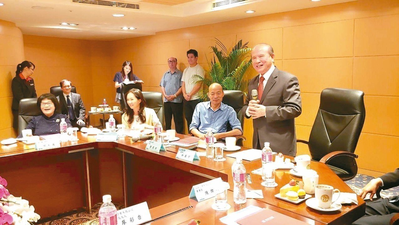 準高雄市長韓國瑜(右二)昨天拜會義联集團董事長林義守(右一)。 記者林政鋒/攝影