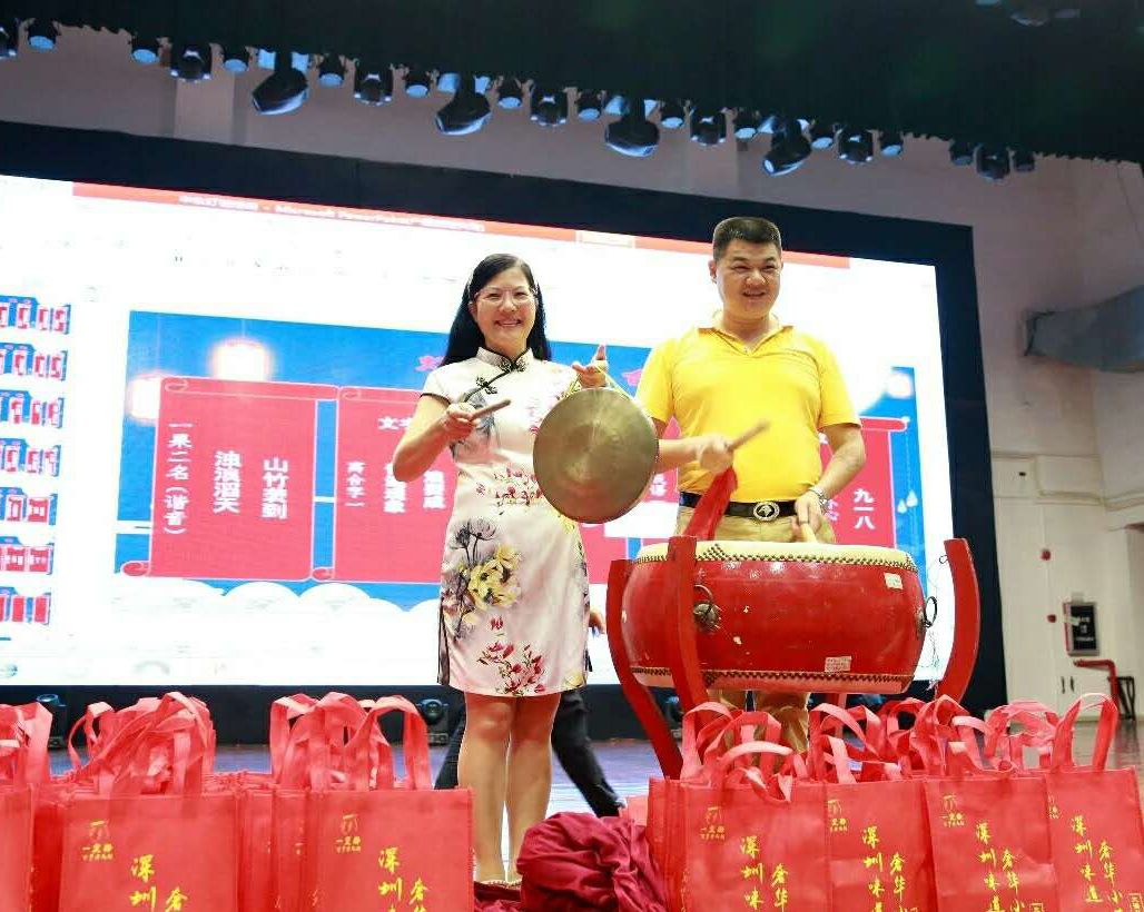 東莞懷之文化傳媒董事長張懷之敲鑼宣布正式開始猜燈迷。